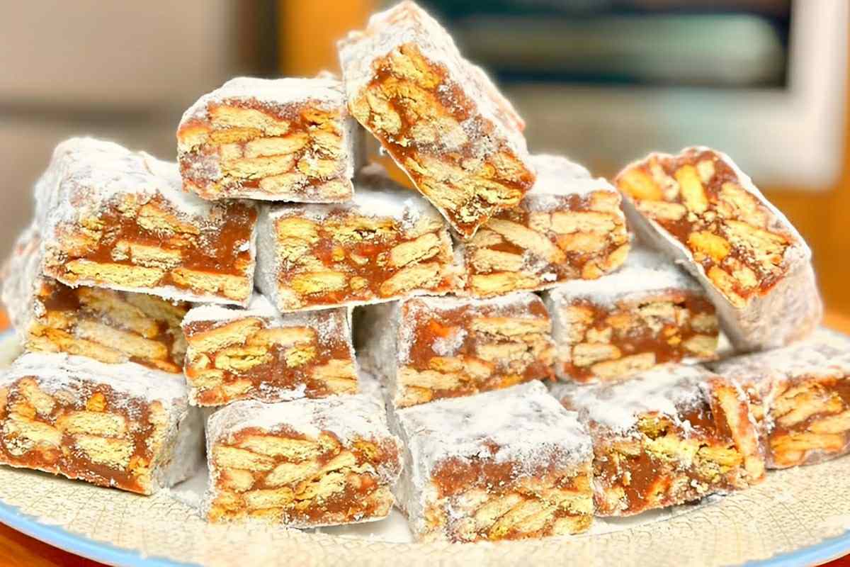 - Retire da geladeira, corte em quadrados e empane no açúcar de confeiteiro e disponha numa travessa para servir.