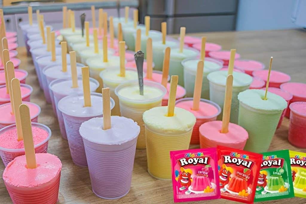 Para preparar picolé caseiro, iremos utilizar leite, leite condensado, gelatina sabor de sua preferência e água fervente. Primeiramente vamos dissolver a gelatina na água fervente até dissolver totalmente. Em seguida vamos bater os demais ingredientes no liquidificador, exceto o leite em pó e a gelatina dissolvida que serão adicionados por último. Vamos despejar a mistura de picolé caseiro cremoso em copinhos descartáveis, levar para gelar no freezer por 4 horas, retirar, dispor os palitos ou colherzinha e retornar para gelar por mais 1 hora ou até firmar. Agora é só retirar os copinhos e servir essa maravilha de picolé caseiro!